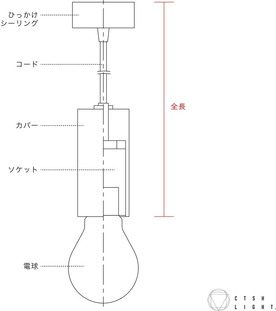 - 全長(cm) ※電球を除く、シーリング部分から灯具(ソケット)先端までの長さです。