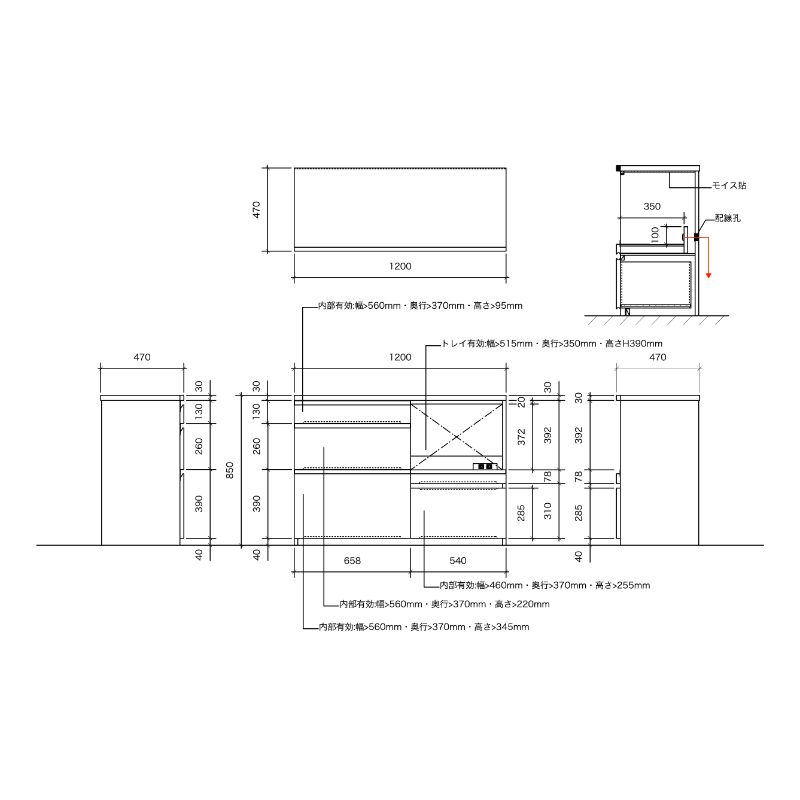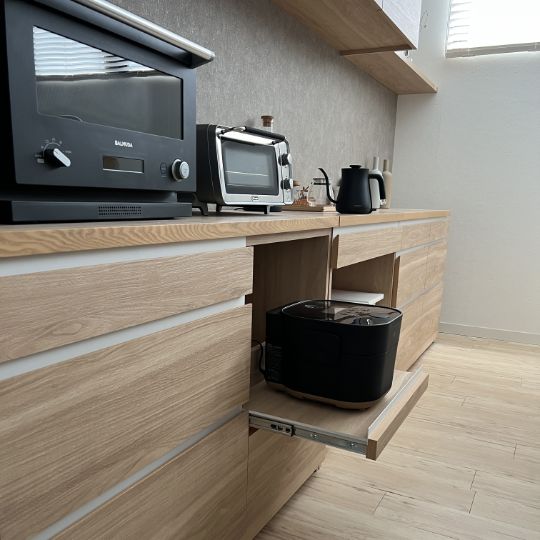 - 家電製品がたくさん置け、収納も抜群
