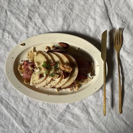 幼少時代からものづくりや自然を身近に感じながら過ごし、10代後半から独学でシルバーアクセサリーや洋服・革製品などの製作を始め、ハンドメイド商品の販売を行っていました。 カトラリーを作り始めたきっかけは、お料理好きの奥様が素敵な器やカトラリーを集めていたこと。さまざまな作品を見ているうち、次第にその役割や美しさに惹かれていきましたが、可愛いデザインでも時折、使いにくそうにしている姿を見て、ふと「見た目と使いやすさの両方を持った、妻が喜ぶようなカトラリーを作ろう」 と思ったのがきっかけです。そして コツコツと培った金工や革細工の知識を持って、2020年から本格的にカトラリーの製作を開始しました。