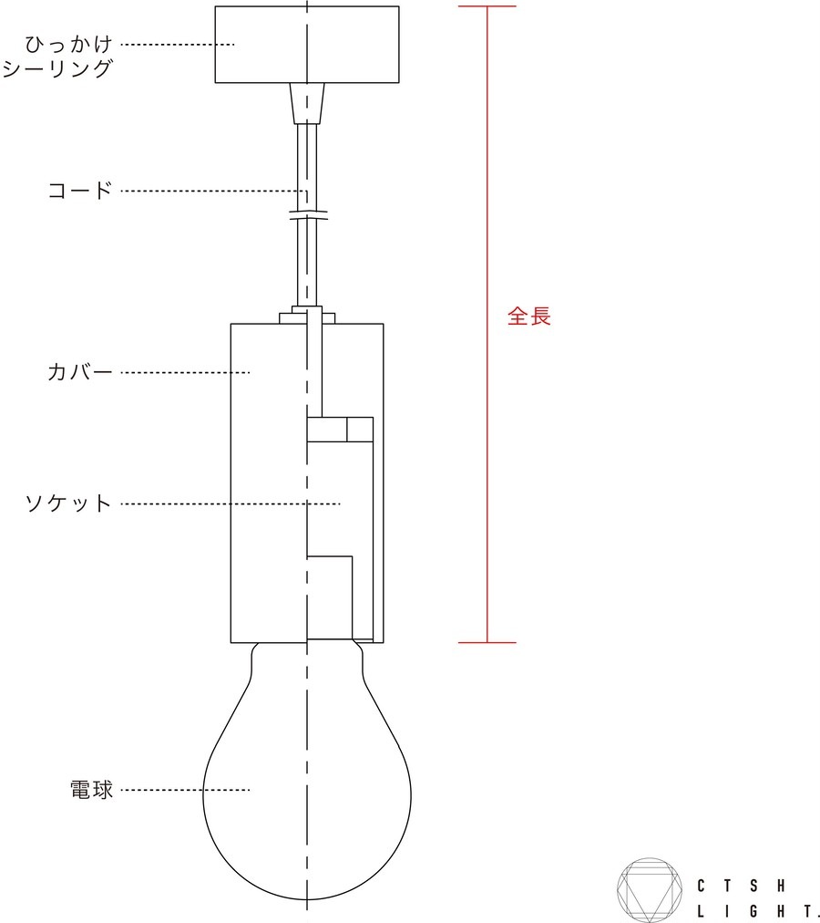 - 全長(cm) ※電球を除く、シーリング部分から灯具(ソケット)先端までの長さです。