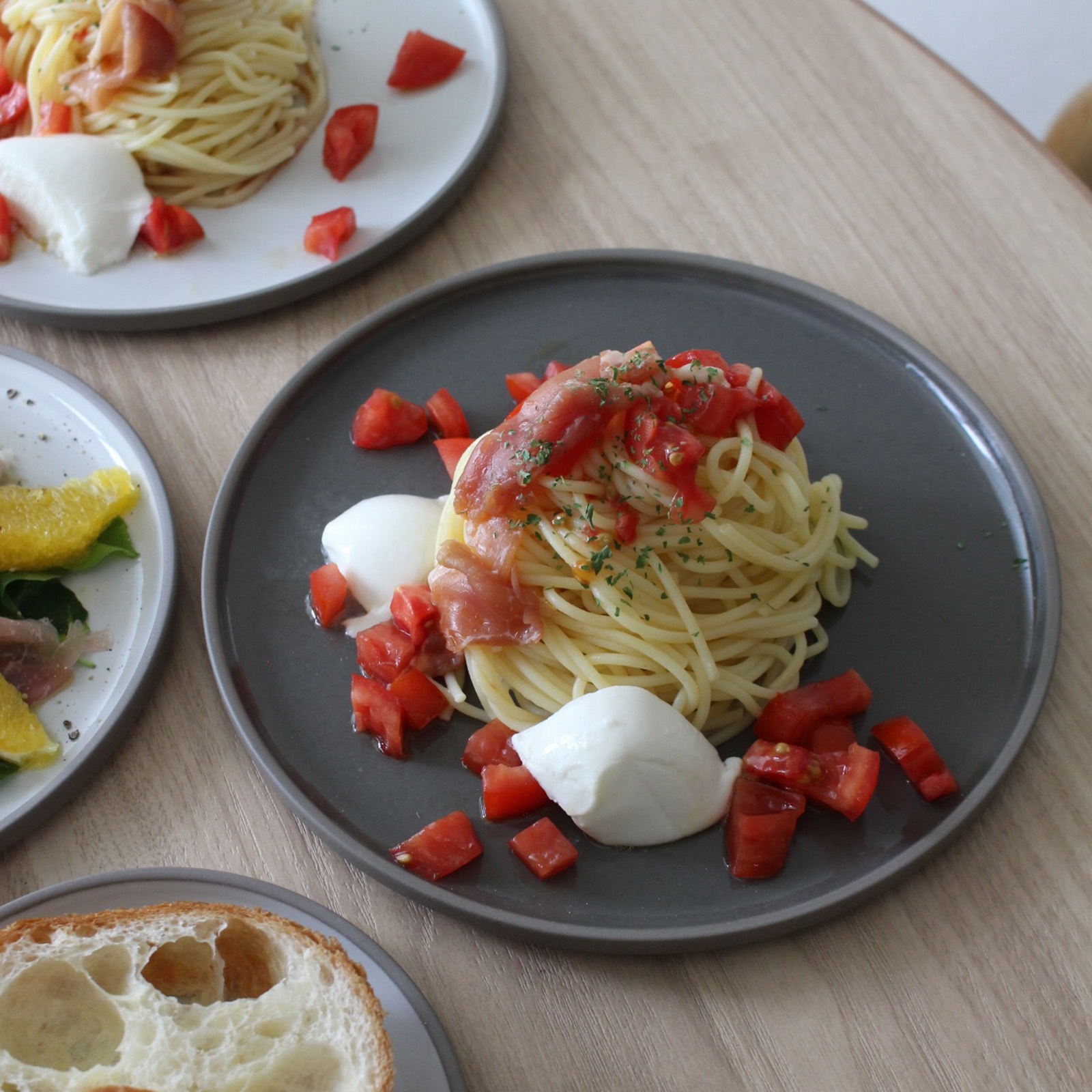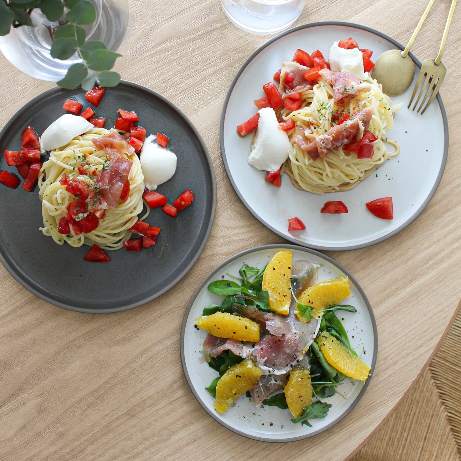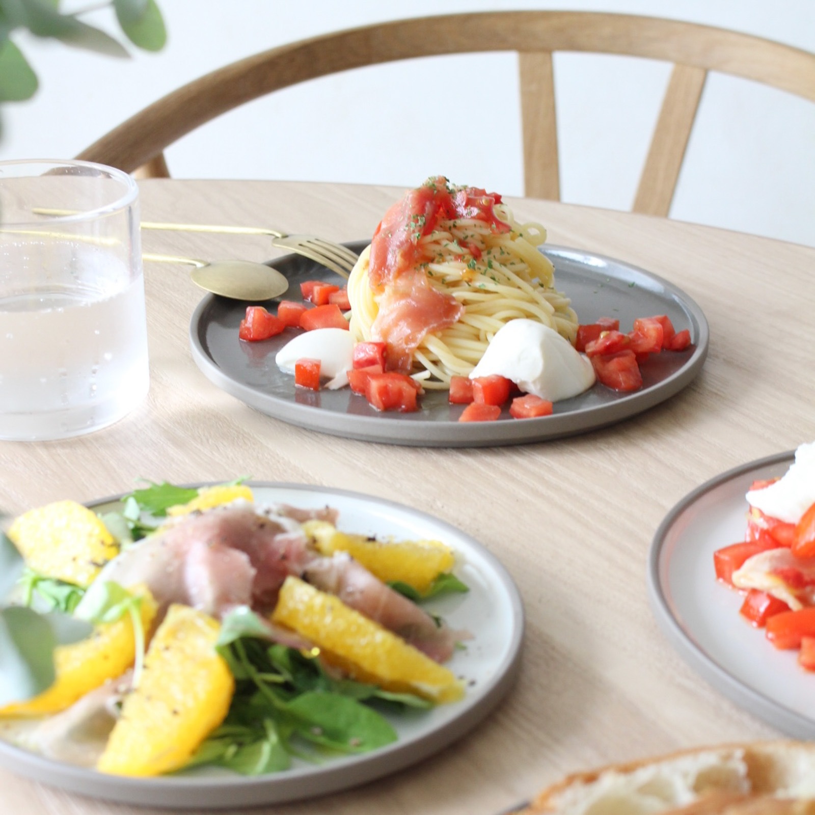 このφ220のサイズはメイン料理や取り分け料理にも使いやすい大きさで、 プレートに料理を盛れば、どんな料理でもおいしそうに彩ります。