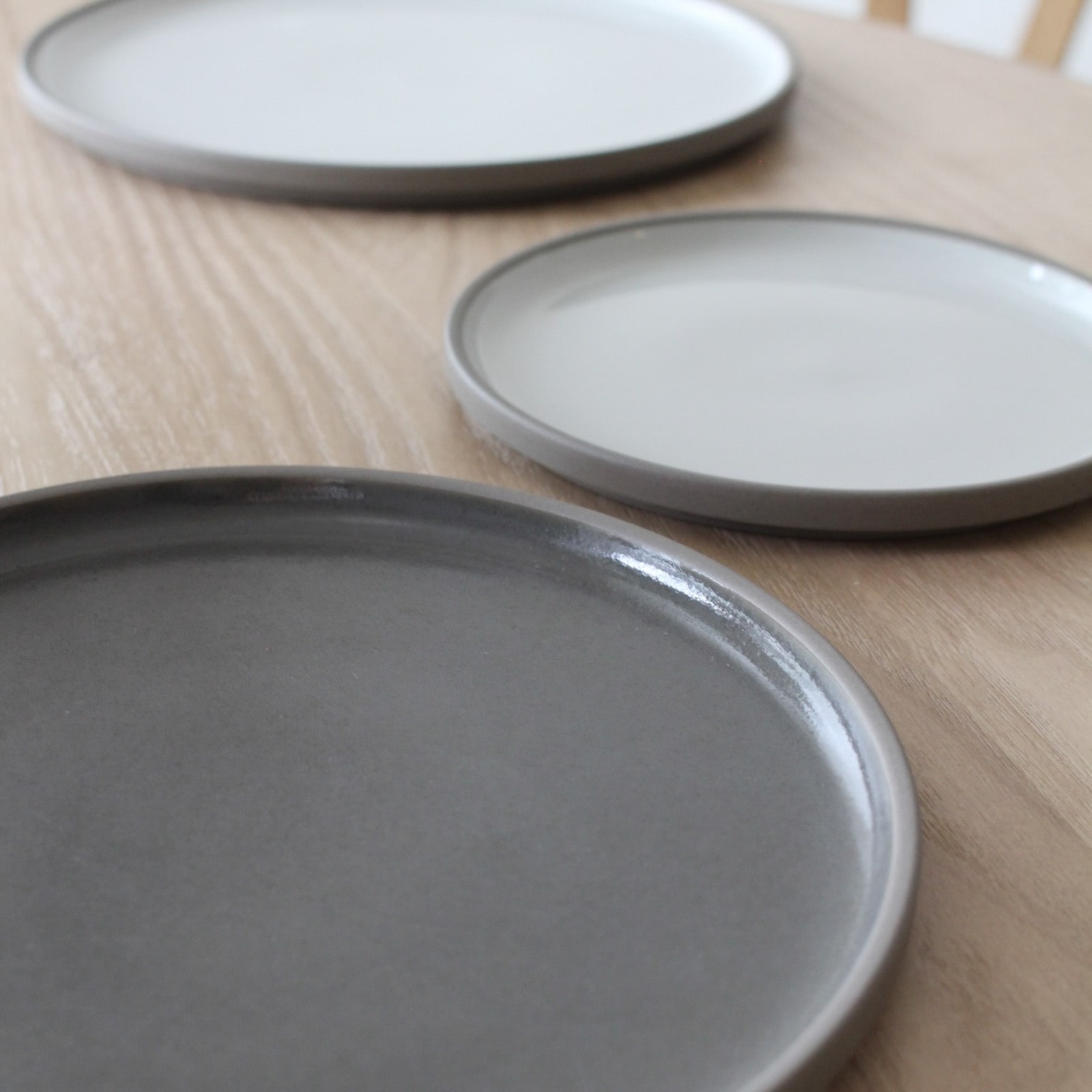 「HASAMI PORCELAIN」(ハサミポーセリン)に新たに追加となったグレーの磁器で構成したコレクション「THE GREY COLLECTION」。外側はエッジまでグレーのシャープな素材感で、内側は釉薬でコーティングし艶を帯びた滑らかな表情となっています。ブランド共通のモジュールでの設計によりオリジナルコレクションとも調和しスタッキングも可能です。プレートの高さをオリジナルコレクションの半分に設計され、釉薬を施した内面は、金属製のカトラリーを使用しても引っ掛かりない質感となっております。